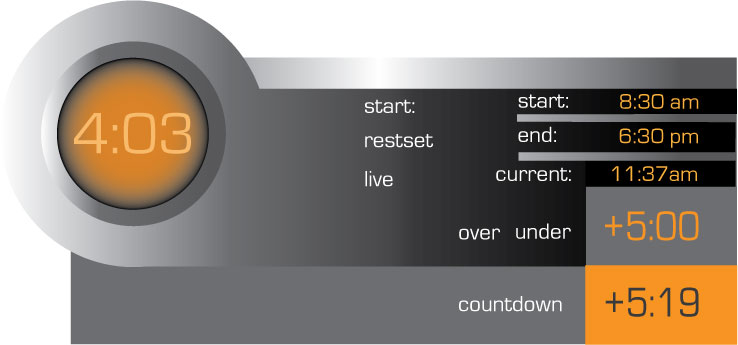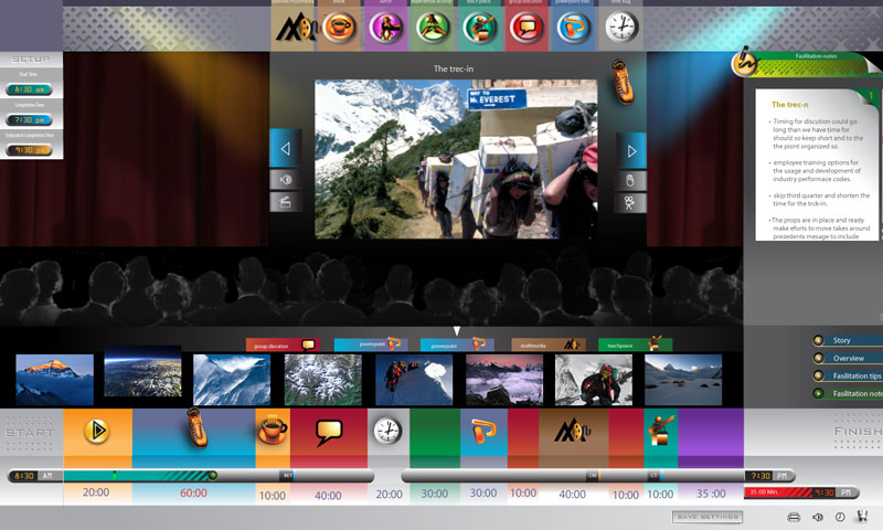 - OnTime visualizer gives facilitator constant visual feedback about progress against the planned timetable. Allows inspired departures from script and the opportunity to make adjustments to the remainder of the program to meet hard time targets